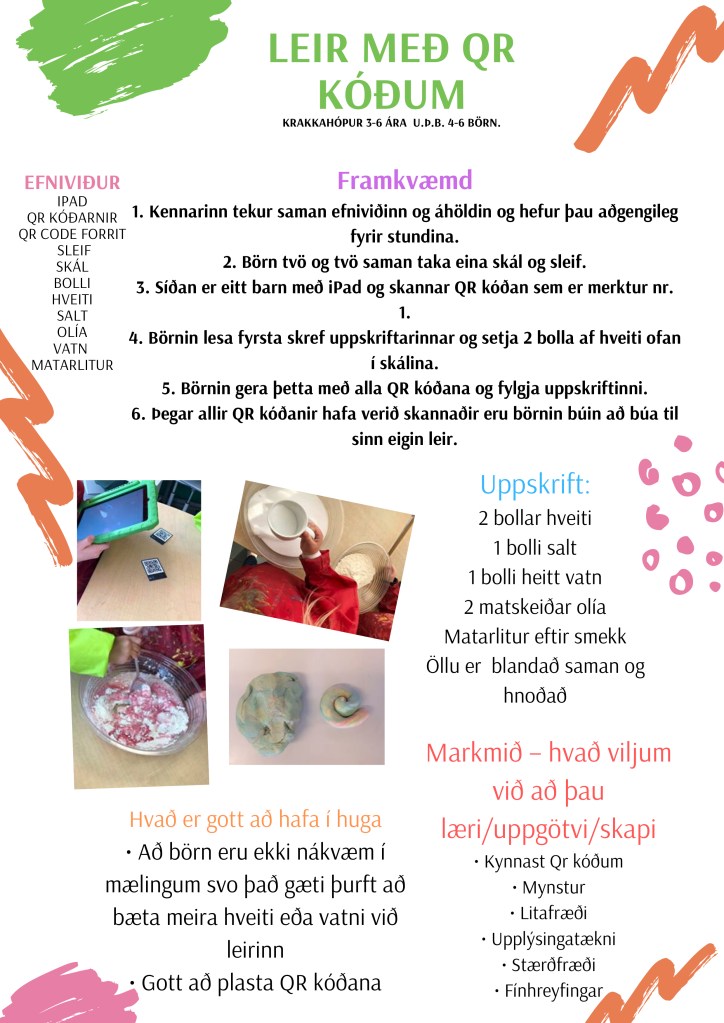 Í þessu verkefni er QR kóðin kynntur, kennurum leiðbeint hvernig lesið er úr honum og hvernig nálgast megi upplýsingar um það sem er á QR kóðanum.