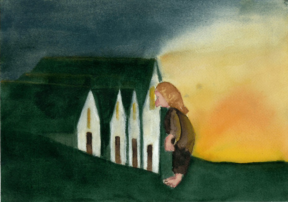 Á einum bæ var það, að sá sem gæta átti bæjarins á jólanóttina, meðan hitt fólkið var við aftansöng, fannst annaðhvort dauður að morgni eða æðisgenginn. Þótti heimamönnum þetta illt og vildu fáir til verða að vera heima. Einu sinni býðst stúlka ein til að vera heima. Urðu hinir því fegnir og fóru burt. Stúlkan sat á palli í baðstofu og kvað við barn eitt, sem hún hélt á. Um nóttina er komið á gluggann og sagt: