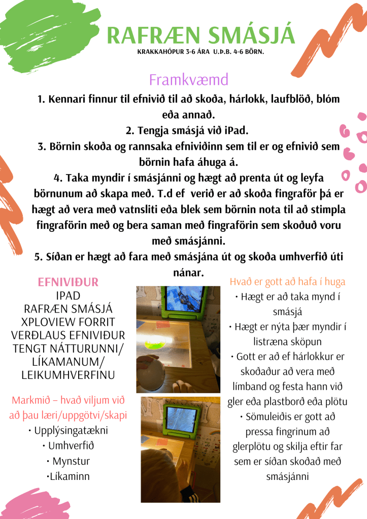 Börnin þurfa tækifæri til að prófa sig áfram með smásjána og skoða sjálf það sem þau hafa áhuga á.